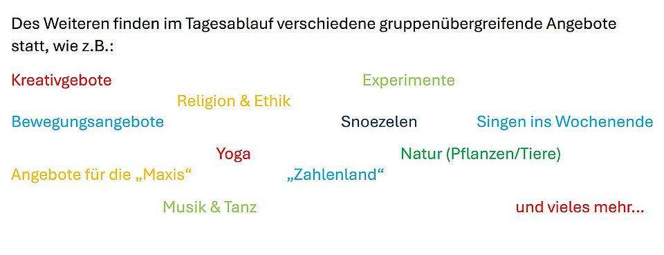 Dadurch begegnen wir allen Mitmenschen mit Offenheit und Akzeptanz. Wir leben eine Willkommenskultur gegenüber Vielfalt, Gender und Diversität. Das Wohl jedes einzelnen Kindes liegt uns am Herzen. Wir erkennen die Einzigartigkeit der Kinder unserer Einrichtung mit all ihren Fähigkeiten und Fertigkeiten an und begleiten sie in ihrer individuellen Entwicklung.