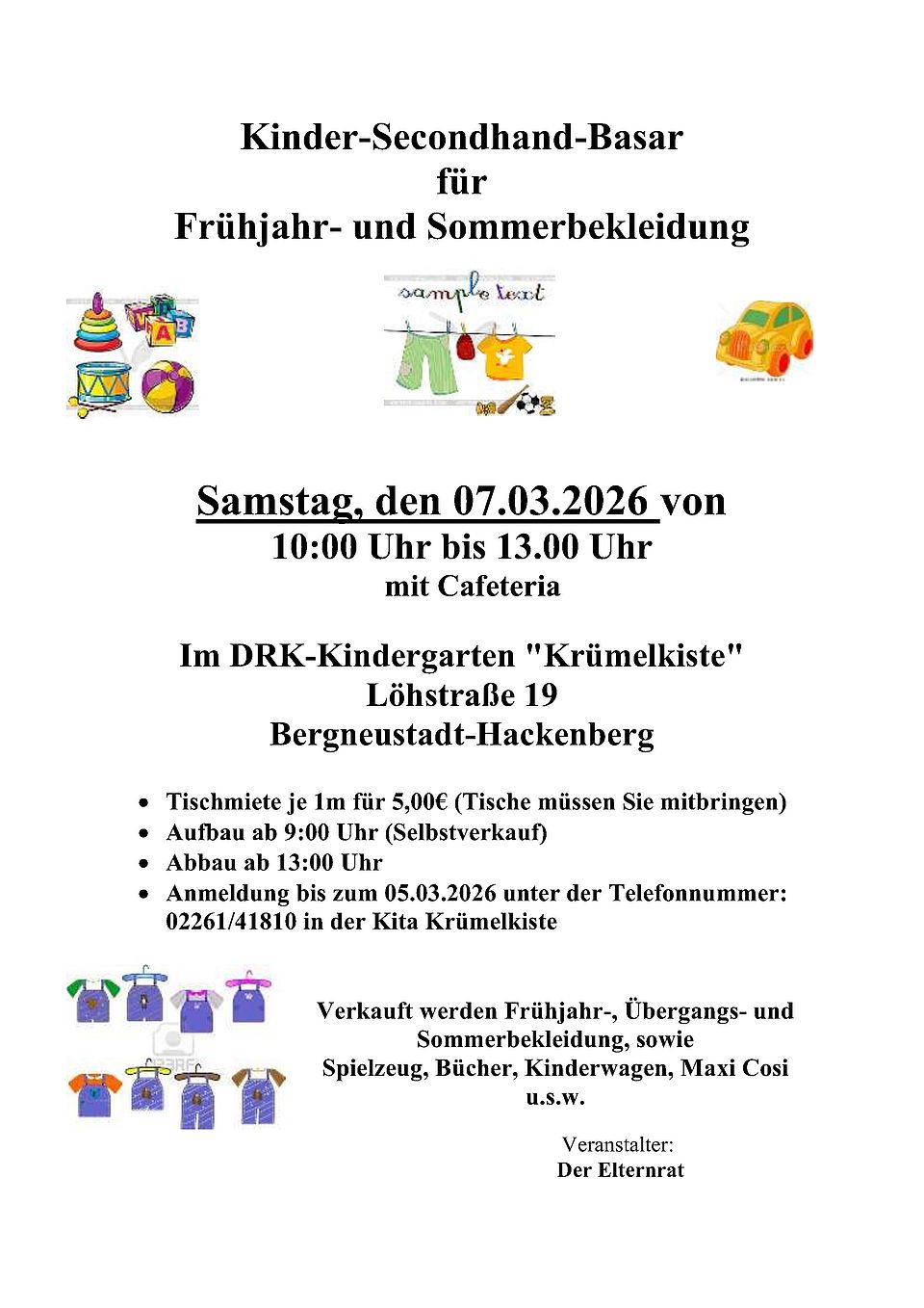 Kinder-Secondhand-Basar am 07.03.2026 in der Kita Krümelkiste Hackenberg